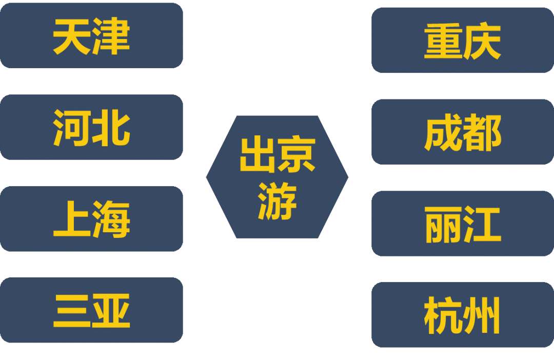 中智游集团通过对网络搜索数据的统计,对于北京网民,市内游搜索量较高的为八达岭长城、颐和园、北京野生动物园等景区;出京游搜索量以天津、河北、杭州、丽江、重庆等地居高。