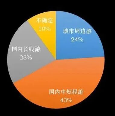 疫情结束后会先去哪里旅游?有90%以上的被调查者选择国内游。其中,城市周边游、国内中短程游、国内长线游是主要选择,分别占比24%、43%、23%。目前在线旅游平台产品上线和预订情况也符合这一趋势,景区门票、门票+酒店套餐、周边游线路率先复苏。